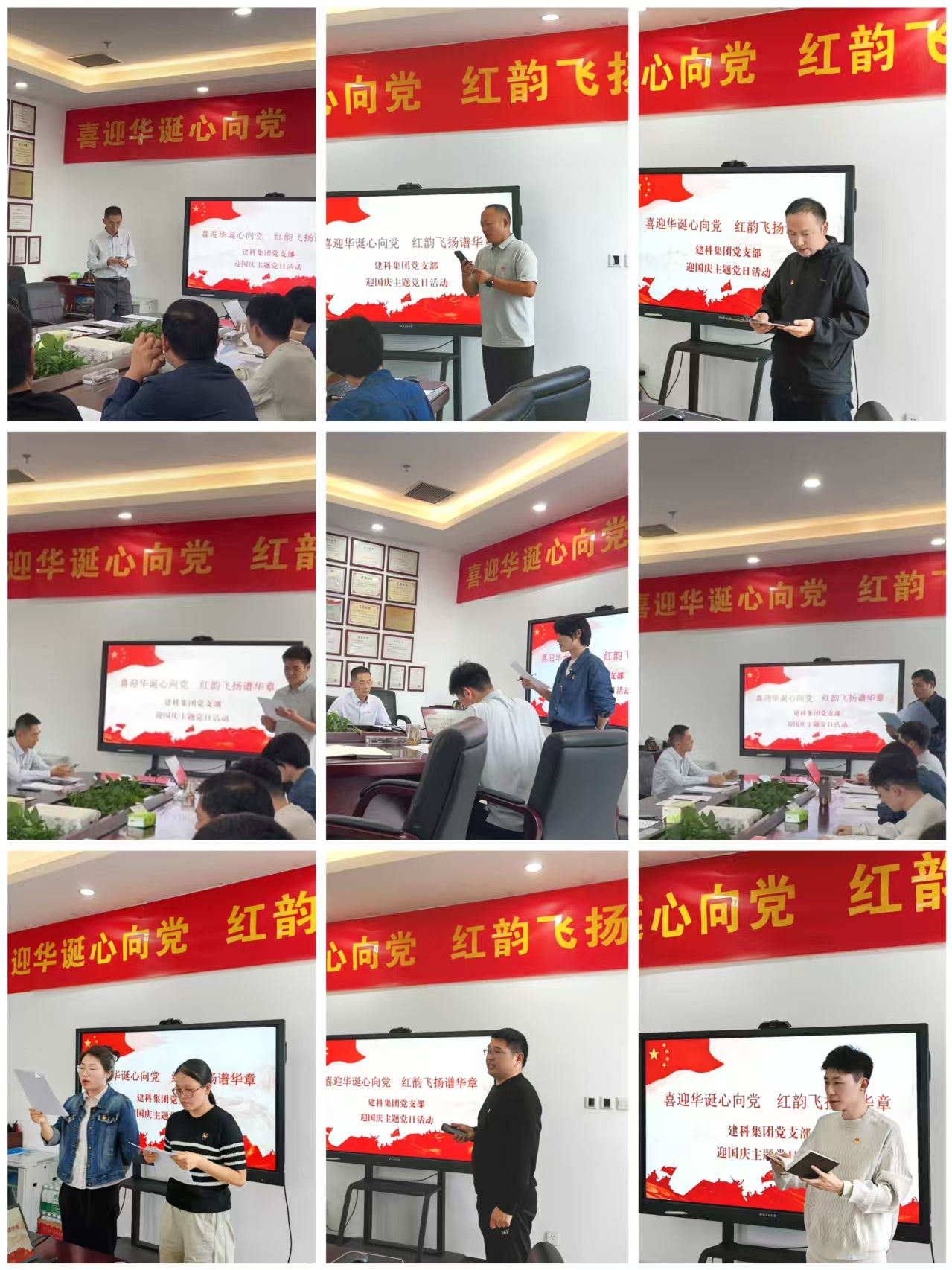 金秋時節(jié),丹桂飄香,祖國76周年華誕的喜慶氛圍悄然浸潤神州大地。9月26日,建科集團(tuán)黨支部隆重舉辦“喜迎華誕心向黨 紅韻飛揚譜華章”迎國慶主題黨日活動。支部書記、公司總經(jīng)理張四化、副總經(jīng)理茍亞兵、王瑩以及黨支部全體黨員、職能部門職工齊聚一堂,以紅歌傳唱、經(jīng)典朗誦為紐帶,在紅色旋律與激昂文字中,共賀祖國華誕。
